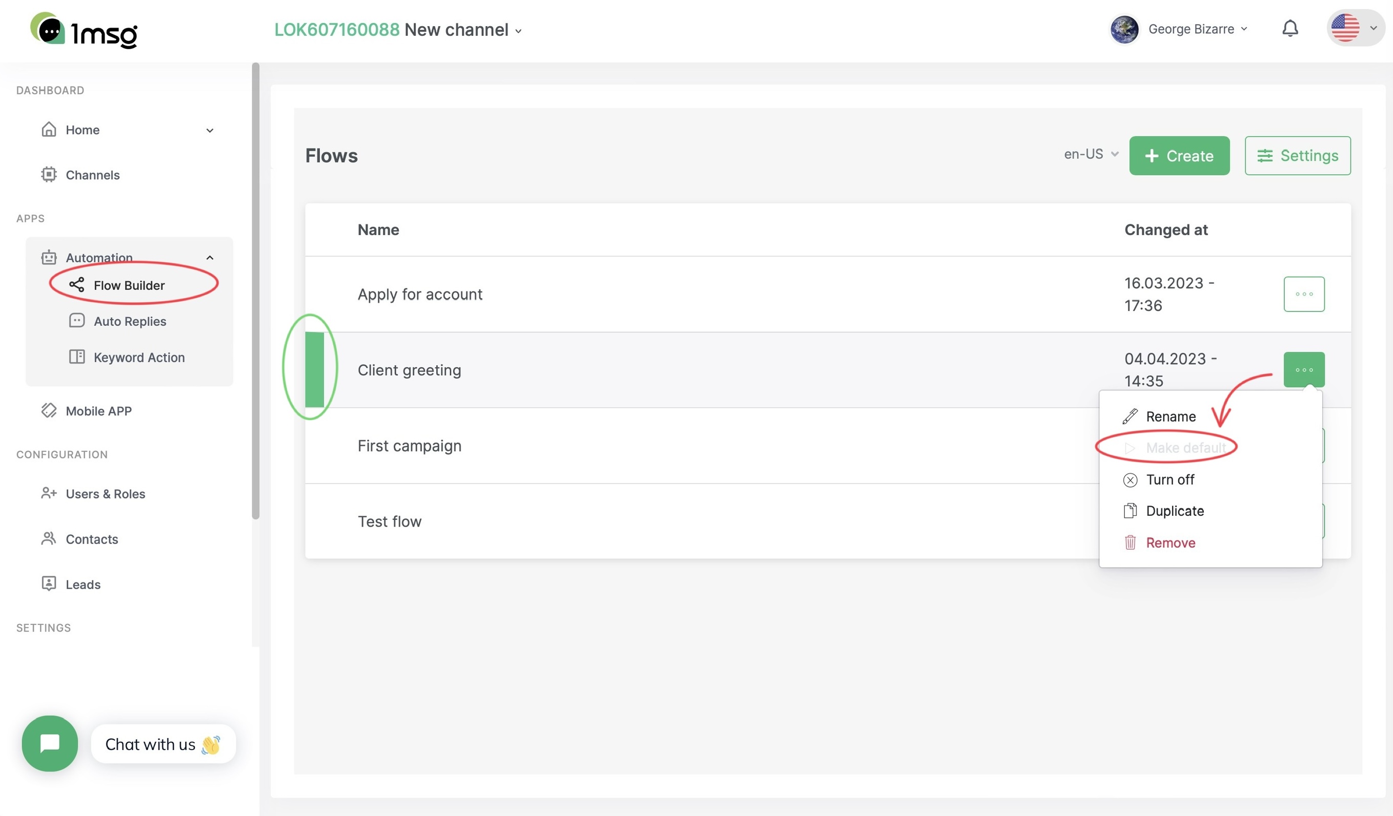 This can be checked in the flow list. One of the flows should be marked by green line—this is the flow that will run by default. Select Automation → Flow Builder, then click the ellipsis button to the right of the script name and then select Make default. In the example below, this option is not available because the flow is already chosen as default and is marked.