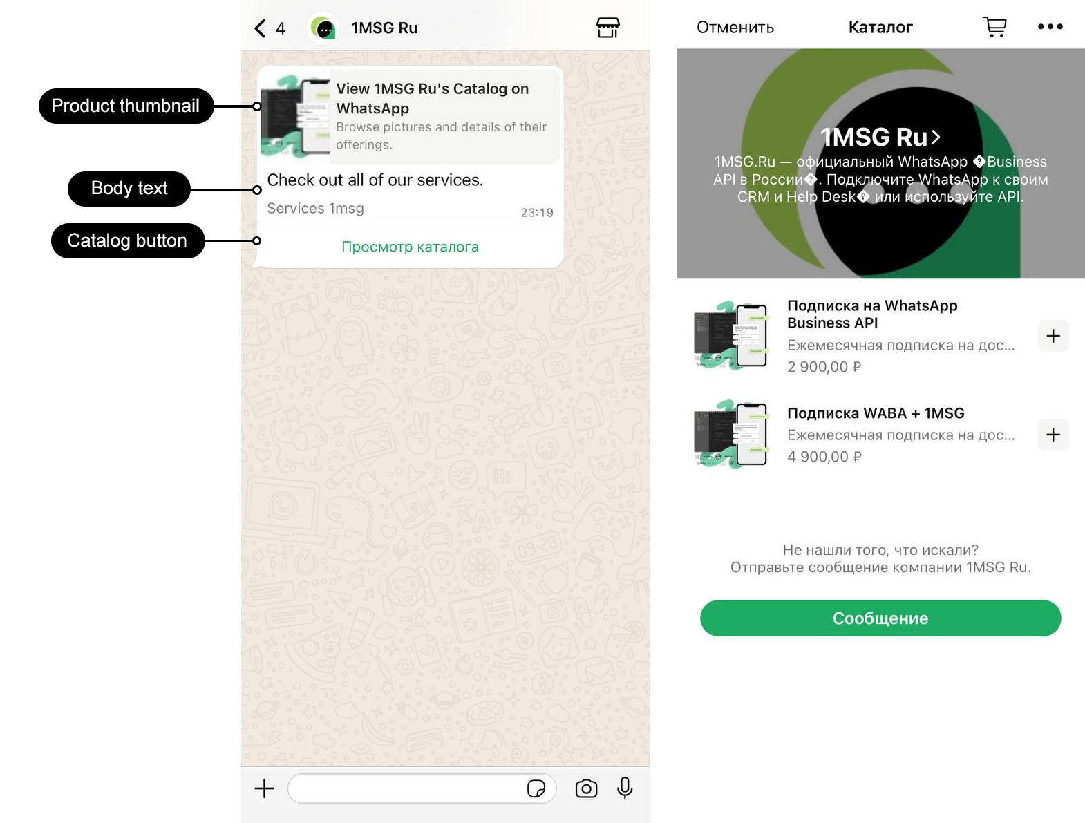 Шаблон сообщения «Каталог» поддерживается только в Cloud API.