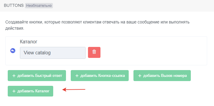 BUTTONS. Можно выбрать только одну кнопку. Нажмите на "Добавить Каталог". Наименование не управляется.