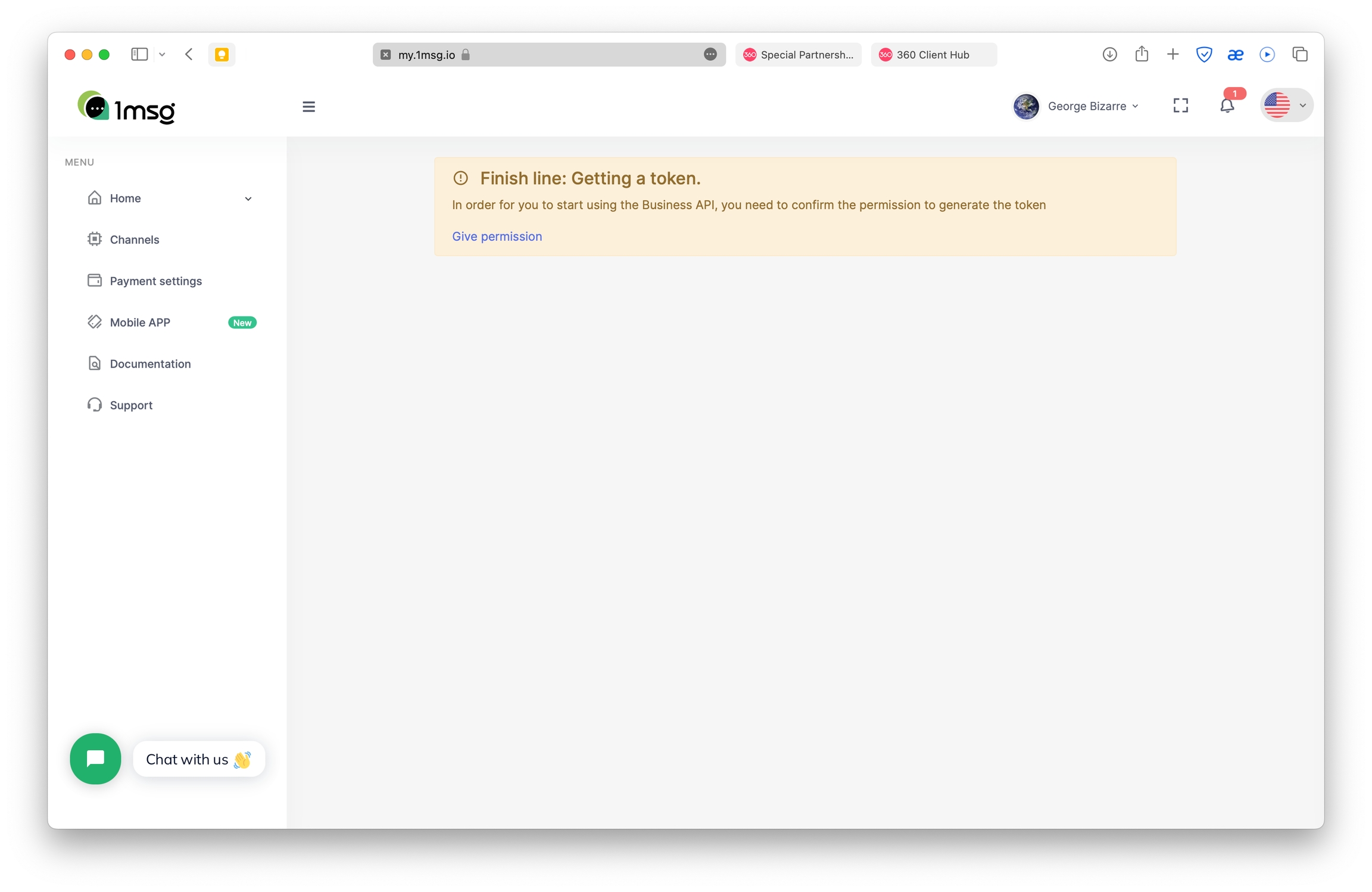 In this case click 'Give permission' and re-select the number from the dropdown list and click 'Save selection'. Note than you'll have to re-specify the number for the new channel (because you've just turned the number back), so try not to mix them up.