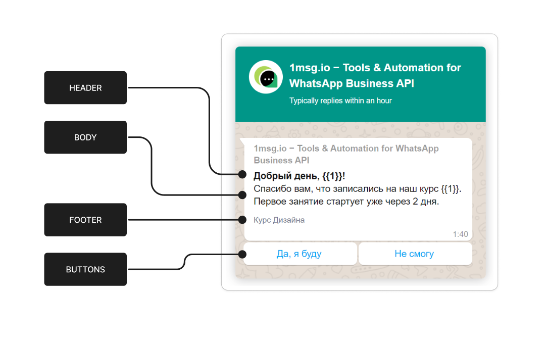 WABA-ΡˆΠ°Π±Π»ΠΎΠ½Ρ‹ β€” это ΠΏΡ€Π΅Π΄Π²Π°Ρ€ΠΈΡ‚Π΅Π»ΡŒΠ½ΠΎ созданныС ΠΈ ΠΎΠ΄ΠΎΠ±Ρ€Π΅Π½Π½Ρ‹Π΅ ΠΊΠΎΠΌΠΏΠ°Π½ΠΈΠ΅ΠΉ Meta ΡˆΠ°Π±Π»ΠΎΠ½Ρ‹ сообщСний для ΠΎΡ‚ΠΏΡ€Π°Π²ΠΊΠΈ Π² WhatsApp Business API, ΠΊΠΎΠ³Π΄Π° Π·Π°ΠΊΡ€Ρ‹Ρ‚ΠΎ 24-часовоС Π΄ΠΈΠ°Π»ΠΎΠ³ΠΎΠ²ΠΎΠ΅ ΠΎΠΊΠ½ΠΎ. Π¨Π°Π±Π»ΠΎΠ½ ΠΌΠΎΠΆΠ΅Ρ‚ ΡΠΎΠ΄Π΅Ρ€ΠΆΠ°Ρ‚ΡŒ тСкст, изобраТСния, Π΄ΠΎΠΊΡƒΠΌΠ΅Π½Ρ‚Ρ‹, ΠΏΠ΅Ρ€Π΅ΠΌΠ΅Π½Π½Ρ‹Π΅ ΠΈ ΠΊΠ½ΠΎΠΏΠΊΠΈ.